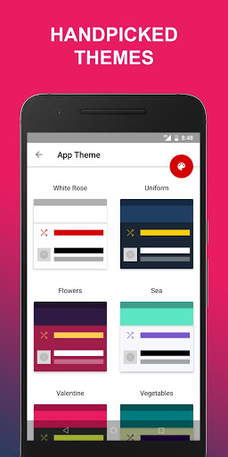 Choose from a collection of handcrafted themes or set your favourite colours to change entire app’s look and feel. Moreover, you may as well set the default opening screen from Settings.