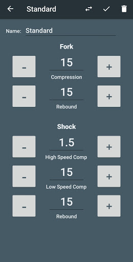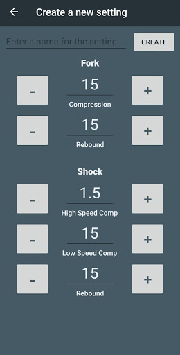 Tip: The first setting you create should match the actual settings on your bikes suspension adjusters. It will automatically be tagged as your 'current' setting.