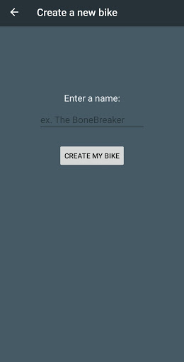 1. First, Click the 'add' button to create a new bike. Give it a cool name and click 'Create'.
