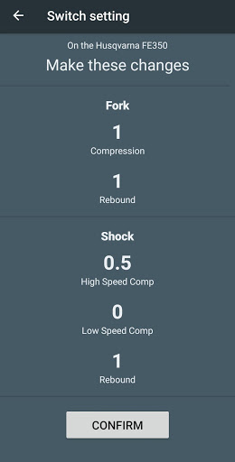 The app supports the basic adjusters found on most dirt bikes.