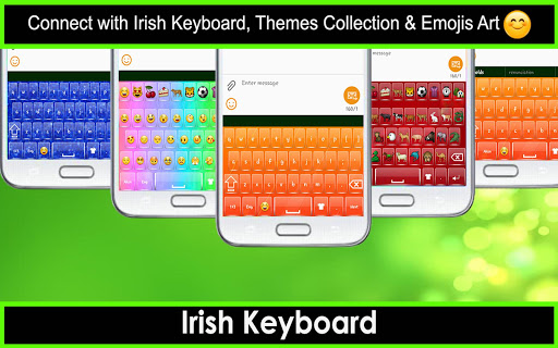Try this amazing Irish keyboard with face emoji and English Irish keyboard to make you expert in Irish typing; it is compatible to write Irish textual at all Irish writing forums. Apart from Irish language alphabets, it makes your Irish texts more interesting with keyboard emojis and similes with face emoji Irish keyboard. You can create your own new keyboard theme with easy Irish typing keyboard. Change beautiful themes by selecting any desired default keyboard themes in Irish keyboard app. For fast and smart English and Irish typing! Download our Irish keyboard in Irish language and translate English to Irish with Irish language keyboard. Irish keyboard with Emojis and themes is two in one keyboard so you can also type in English without changing the English to Irish keyboard app.