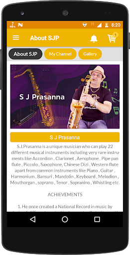This one of its kind App for the first time in India has been created by S.J.Prasanna who is considered to be the best teacher for Instrumental music by Millions of his fans across the Globe to facilitate easy learning for students who want to play and enjoy their favorite songs on Saxophone and Harmonica. (Both Diatonic as well as Chromatic)