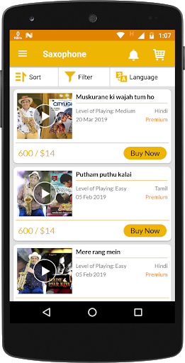2) A separate feature called Filter is provided to enable the student to choose songs in whichever scale he is comfortable with on the saxophone.