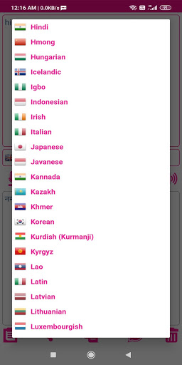 Afrikaans, Albanian, Amharic, Arabic, Armenian, Azerbaijani, Basque, Belarusian, Bengali, Bosnian, Bulgarian, Catalan, Cebuano, Chichewa, Chinese (Simplified), Chinese (Traditional), Corsican, Croatian, Czech, Danish, Dutch, English, Esperanto, Estonian, Filipino, Finnish, French, Frisian, Galician, Georgian, German, Greek, Gujarati, Haitian Creole, Hausa, Hawaiian, Hebrew, Hindi, Hmong, Hungarian, Icelandic, Igbo, Indonesian, Irish, Italian, Japanese, Javanese, Kannada, Kazakh, Khmer, Korean, Kurdish (Kurmanji), Kyrgyz, Lao, Latin, Latvian, Lithuanian, Luxembourgish, Macedonian, Malagasy, Malay, Malayalam, Maltese, Maori, Marathi, Mongolian, Myanmar (Burmese), Nepali, Norwegian, Pashto, Persian, Polish, Portuguese, Punjabi, Romanian, Russian, Samoan, Scots Gaelic, Serbian, Sesotho, Shona, Sindhi, Sinhala, Slovak, Slovenian, Somali, Spanish, Sundanese, Swahili, Swedish, Tajik, Tamil, Telugu, Thai, Turkish, Ukrainian, Urdu, Uzbek, Vietnamese, Welsh, Xhosa, Yiddish, Yoruba, Zulu.