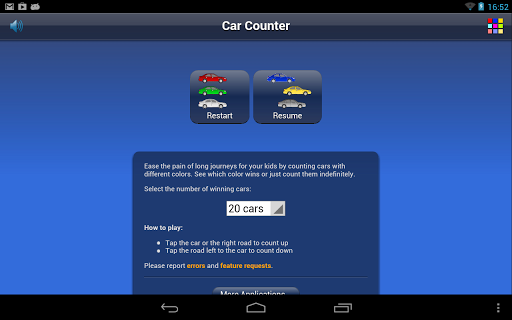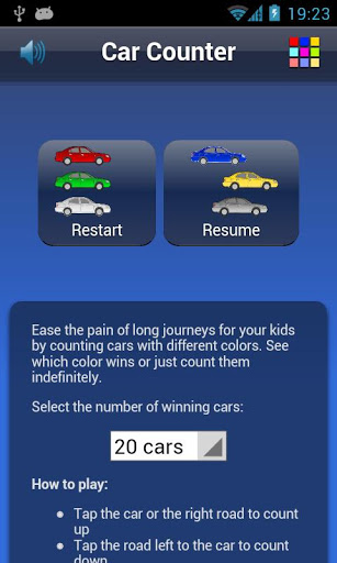 Ease the pain of long journeys for your kids by counting cars with different colors. See which color wins or just count them indefinitely. Ad supported freeware