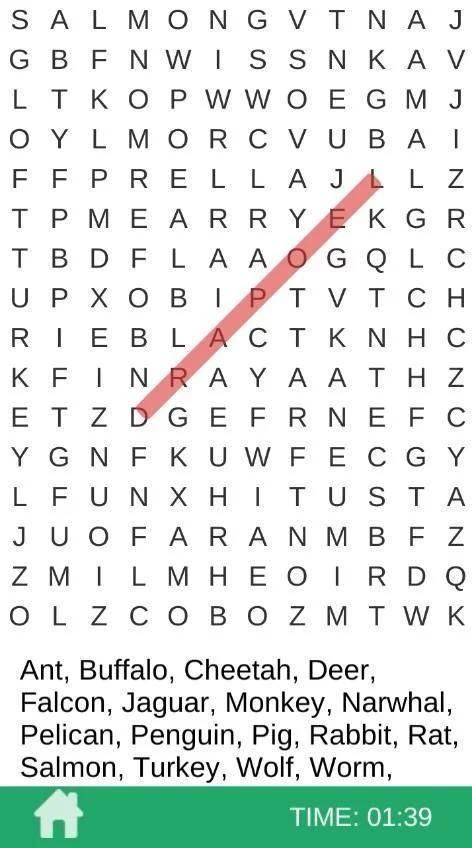 The classic game to find words that do not let you get bored on the road or at home! A great way to relax and pass the time. Our puzzle is divided into several categories such as animals, body, justice, celebrities, city, films, cartoons, clothing, country, flowers, food, profession, music, fruit, names and transport. Come into any of the categories and find the words, which were signed at the bottom of the playing field. Among the letters look messy words and emphasize their marker for this, simply swipe your finger across the screen. Words can emphasize not only vertically and horizontally but diagonally, and more and backwards. Words are always changing and if you went once a category, then you can do it again. More changes and the location of the letters on the field. You can form words to spell a few times, that is, if you used the letters for a word, then you can use any of these words to other words.