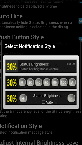 Status Brightness allows you to quickly and easily change the screen brightness of the system no matter what application you are currently in.