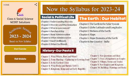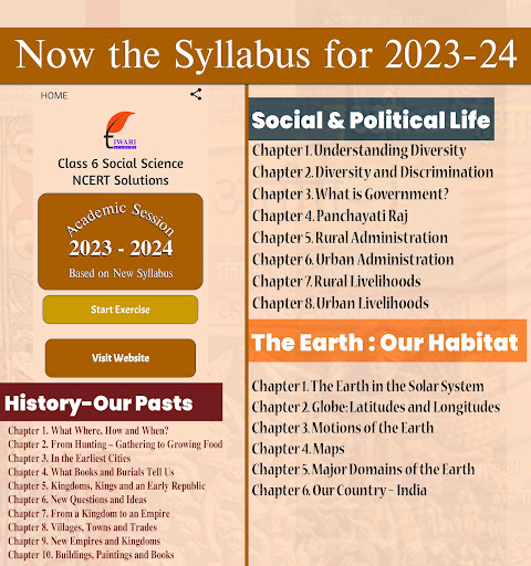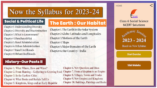 Class 6 Social Science Solutions in English Medium is modified for session 2023-24 based on rationalised NCERT books published for academic year 2023-24. Get here Class 6 History, Geography and Political Science solutions updated for current session. The chapters of Class 6 Social Science are as follows: