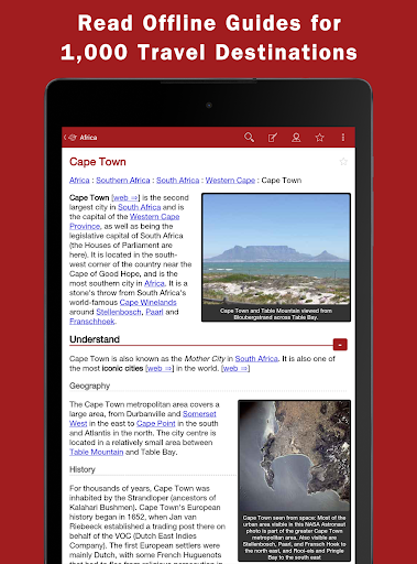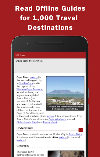 This offline travel guide does not require an internet connection. All the information is stored within the app, so you can access it in the most remote places around the world and avoid expensive roaming charges. You can even see locations on an offline world map.