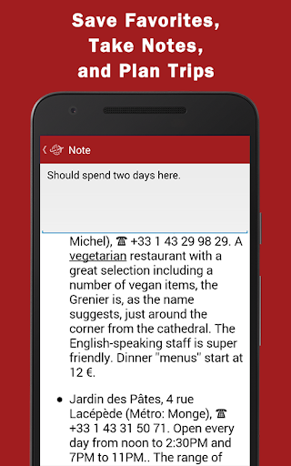 Her seyahat hedefine kendi notlarınızı ekleyin ve seyahatiniz sırasında kolay erişim için en sevdiğiniz yerlerin bir listesini saklayın.