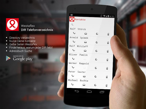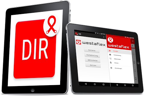 DIR = intercompany directory of Westaflex Four different directories in one application, Employees, Departments, Vendors, and Links. If your company spends time maintaining and handing out paper list of employees extensions, this app solves the nightmare of maintaining constantly changing lists of employees names and numbers, lists of departments, lists of commonly used vendors and their phone numbers, and even lists of links to company network resources and outside web sites. It also increases employee morale and convenience, by making them use their own devices thus making the company look like a flexible and a very attractive employer. DIR is a customized prebuilt Best-of-Breed out which helps to keep you connected and the list will be updated from your contact/company list directory. It not only provides contact details & pictures of all your colleagues, but also has hierarchical information & team information and in addition, it integrates personal & professional social media updates. You can also create your own groups and message members in these custom groups easily. And of course, it connects with any kind of data source and is safe & secure. Our cutting edge app functions like a mobile, interactive version of the company’s intranet (private network). A “dashboard” screen provides shortcuts to our company directory as well as corporate news, videos and messages from our CEOs. the goal is to increase employee productivity. Staffers note that westaflex’s scale calls for such a resource. Our company holding employed approximately 2,700 people at the end of last year and its Guetersloh headquarters comprises 5 buildings. A feature that lists the various buildings, their conference rooms, and locates them on a map has been particularly popular. Get all the contact details and personal information, that can help you connect with the right colleague. Of course, all the contact details are up to date in realtime! See all your colleagues at a glance in a beautiful designed list view - including photos, position title and their availability. You can even preset the list to your own department, project team or custom groups. You don't need a MDM (Mobile Device Management System) to provision DIR, even use DIR as a Portal functionality? The latest extension is a list of all hotline classed business contacts with detailed information and recent images.