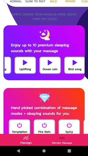 This is a simulated vibrating app. It uses the phone's vibration function to simulate a massage machine. You can also relax and sleep with natural sounds, meditation sound, white noise and much more. It is very simple, easy to use with nice user interface.