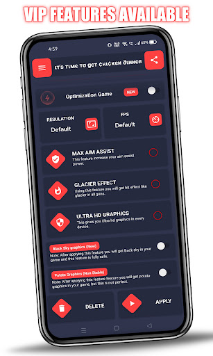• Advanced GFX Tool: Get 25 Readymade GFX Pack To choose from Very Low Graphics to Very High Graphics.