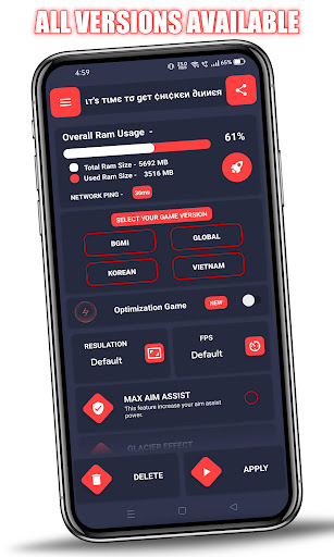 • Customized Game Options: Unlock No Grass Config, No Fog Config, Unlock Highest Available graphics, Unlock 90 FPS & many more with just a single click!