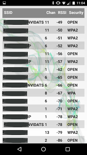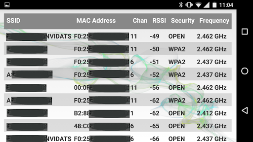 * Monitor (real-time) wifi and displays information: signal strength , security, exact frequency, channel, network name and MAC.