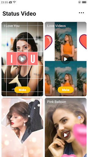 You can create videos of any kind in this app in just one click. The categories contain: