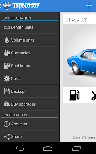 • Totally customizable. In the side menu configuration you will be able to add any currency , unit of measure, fuel brands, ...