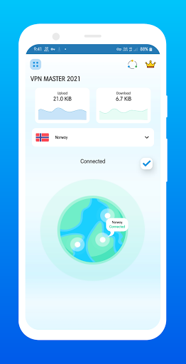 VPN Master 2021 is a lightning-fast app provide free VPN proxy service. Not need any configuration, just simply click one button, you can access the Internet securely and anonymously.