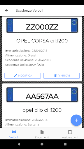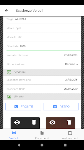 Gestire i dati dei tuoi veicoli e le scadenze.