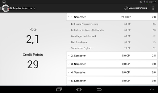 You are studying a bachelor's or master's degree program and want to keep track of your grades? My Grades supports you in managing this, calculates your average grade (GPA) instantly and displays your credit points.