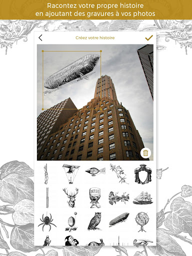 - La possibilité de créer des images fantastiques en habillant vos photos avec une cinquantaine d'illustrations et/ou en appliquant un filtre ;