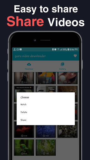 guru video downloader helps you to save videos easily. Also Share your videos on your favorite social platform in just a click. It is super fast and free.
