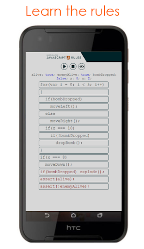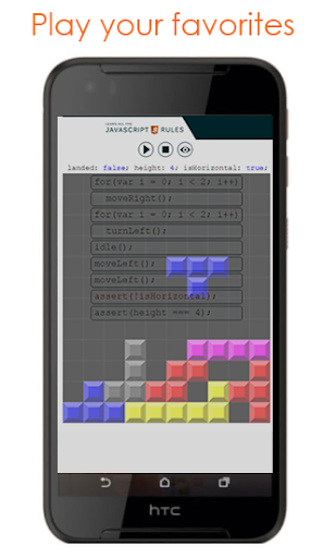 JavaScript rules is a fun, unique, and challenging puzzle where lines of code are its pieces. No typing is involved, the game is played by placing the lines of code in the right order. The game is directed at both beginners and more advanced programmers. For the beginners it can be a learning adventure, where they can learn new stuff every level. For more advanced programmers it is a chance to test and show your JavaScript programming skills. The game involves basic subjects, such as conditionals and loops, but also more advanced, typical JavaScript problems. For both beginners and professionals the game provides a chance to play the old classics in a new way. Play original arcade games while coding you way through!