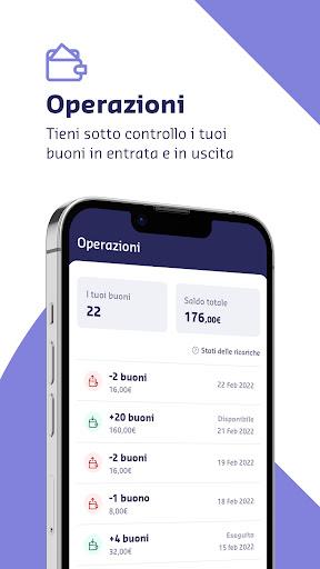 - visualizzare il saldo dei buoni pasto e avere sempre sotto controllo, in un’unica sezione le operazioni effettuate, in entrata e in uscita.