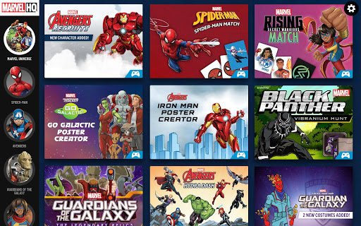 The Marvel HQ app includes Marvel games, trivia, and quizzes featuring your favorite Marvel Super Heroes, including: Spider-Man games, Avengers games, Iron Man games, Captain America games, Thor games, Hulk games, Black Panther games, Ant-Man games, The Wasp games, Black Widow games, Guardians of the Galaxy games, Groot games, Rocket Raccoon games, Ms. Marvel games, Squirrel Girl games, and more Super Hero games!