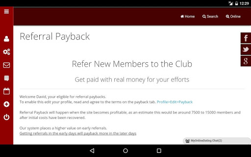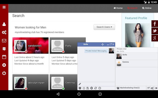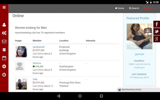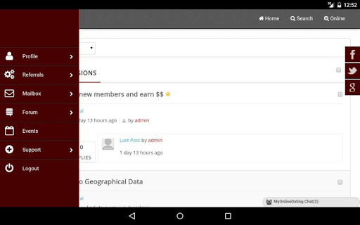 Mobile app for MyOnlineDating Club, the Free Online Dating Club offering: