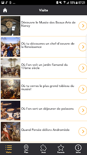 Discover the collections of the Musée des Beaux-Arts, Nancy (France) with this mobile app. Visit the museum through the centuries, its masterpieces, a theme or the look of a writer; follow our agenda, play, explore, test and renew your visit as often as you want! The mobile app of the Museum of Fine Arts Nancy is aimed at all audiences: adults, children and disabled public thanks to its courses LSF and audiodescriptif. Temporary exhibition routes will also be available on this app.