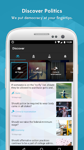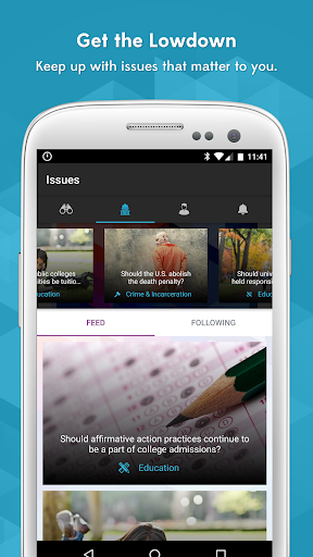 Learn about important political issues with side-by-side comparisons in a neutral, nonpartisan space. Take meaningful actions to make your voice heard. Register to vote and contact your representatives in one convenient place. We’ll notify you when there is new legislation for issues you care about. Plus we’ll remember upcoming election information, so you don’t have to.