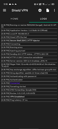4. Tap or press the connect button to start