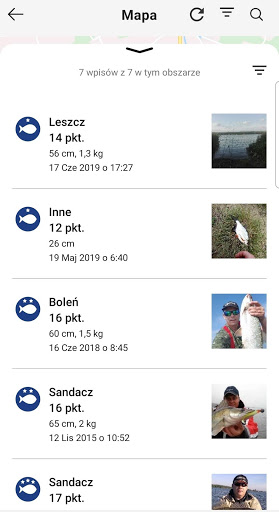 The catches will be shown in the interactive map. The map has many functions and filter settings. It shown fishing shops, places where to get fishing licenses or boat rentals and also all other users if they set the status public or just for friends, if the status is set that only friends can see them for maximum privacy it can be also set on stealth. Of course it shows also the catches. User can see which fish species are common in some areas and going then into the catch see more details of the catch. The map is a great tool to plan fishing trips and to find good fishing spots. The catch view on the map can be customized to the fishing method or fish species so for example carp anglers can just see in the map carp catches if they set the filer or fly anglers catches which are posted by fly fisherman.
