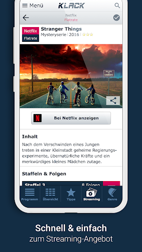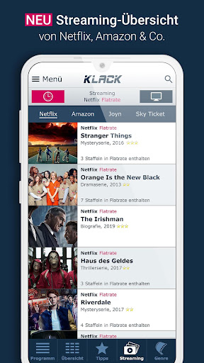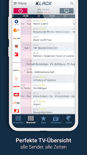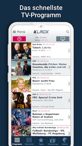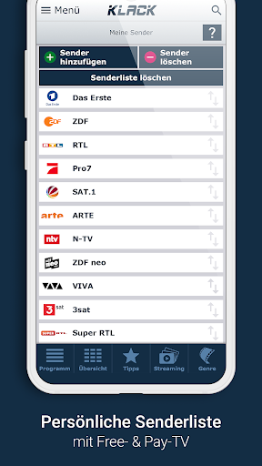 z loginem w aplikacji Klack , Twoje osobiste listy transmisji z Klack.de zostały przejęte.Masz więc swój osobisty program telewizyjny bezpośrednio na telefonie komórkowym i możesz poruszać się szybciej niż w filmie telewizyjnym, filmie fabularnym lub telewizji.Klack może zrobić coś więcej niż klasyczna gazeta telewizyjna: Odkryj programWidget