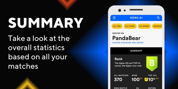 Our PUBG Assistant gathers and unites statistics on the basis of all your matches including every aspect of your game style. Now you can find out which weapons are the best for you to use according to your accuracy, the number of your wins and loses, and many more. Just fill your nickname and click the find button - become the best in the battleroyle!🐤🐤🐤🐤