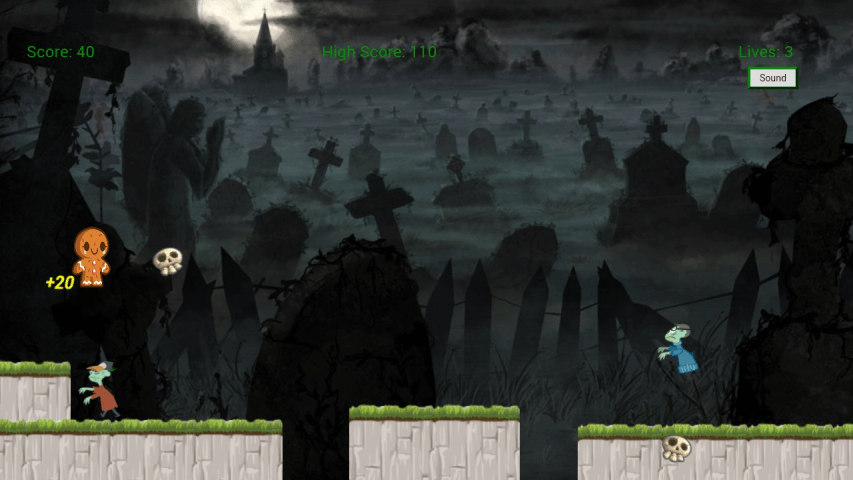 Помоги Печеньки собрать всё печенье,избегая Зомби.