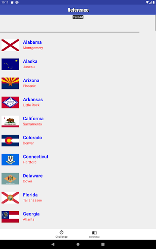 The Reference section has general knowledge about each state for students to view. It includes each state's capital, flag, statehood, rivers, and lakes.