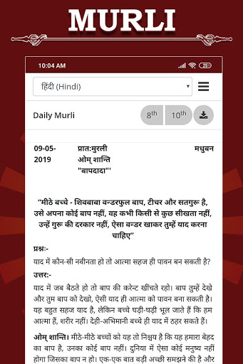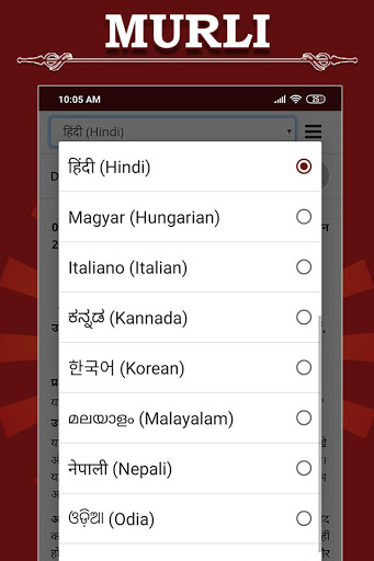 In App, Mobile Murli is accessible to 'peruse' and to '(Read ) in Hindi Murli , English Murli , Bengali Murli , Nepali Murli , Tamil Murli , Telugu Murli.''