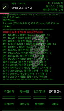 해커온라인(Hacker Online)는 터치 형식 전략 게임입니다. 사이버넷에 접속해서 다른 해커들의 방어벽을 무너뜨려서 랜섬웨어를 심을 수 있으며, 해킹을 많이 해서 최대한 높은 랭킹에 등극하는 것에 집중해야 합니다. 사이버 넷에는 정과 사랑, 연민 같은 건 없습니다. 치명적인 해커들의 해킹 기술들과 해킹 코드들로 난무합니다. 사이버넷에서 믿을 수 있는 건 오직 자신뿐입니다.