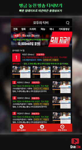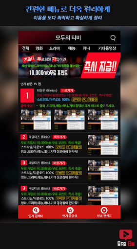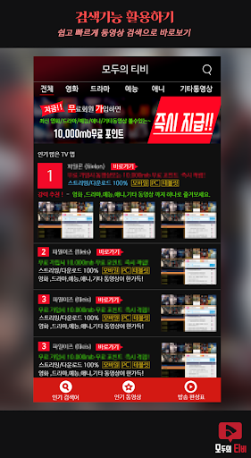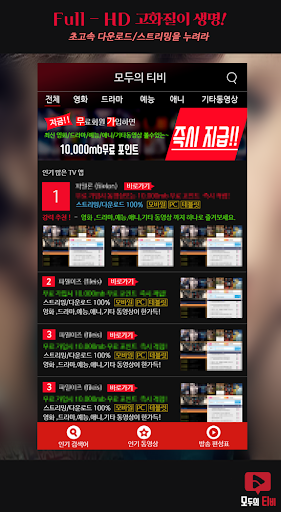 특징! ⅰ.검색기능 활용으로 찾기어려운 동영상 쉽게 찾기 ⅱ.지상파,케이블 방송 모두 가능 ⅲ.인기 많은 티비앱 정보 제공 ⅳ.초고속으로 답답함 제로! ⅴ.선명한 고화질(블루레이,HD) 서비스 일부분은 링크로 연결됨! 실제 앱에서는 직접적 저작권 관련 콘텐츠를 제공하지않으며, 동의가 이루어진 타사에 링크 연결이 된것이므로 저작권 관련 문의는 타사에 있음을 명시합니다.