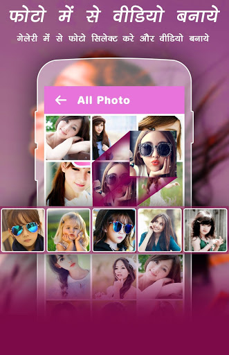 You select photo from camera and gallery. Also you arrange the photos in different order with the perfect background, music and animation to create a video of your own.