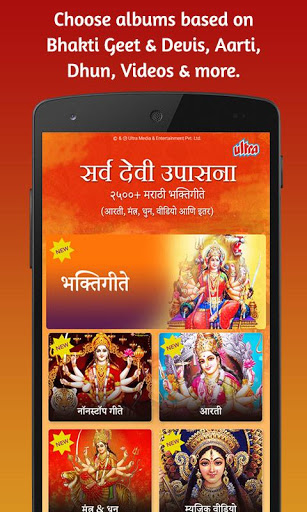 A huge collection of devotional songs to worship the Goddess and seek her blessings. App has songs on the various forms of the Goddess अंबाबाई, एकवीरा, जीवदानी, काळूबाई, महाकाली , महालक्ष्मी, मयाक्का, मोहाता, रेणुका सप्तशृंगी, यल्लमा माता and many more.... This is a superhit album with songs conveying various moods of devotion to the Goddess.