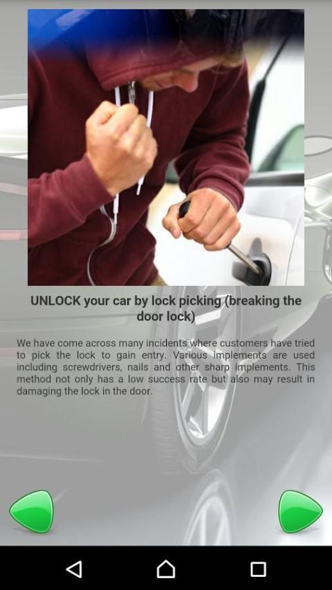 كيف يمكنك فتح السيارة مع أساليب مختلفة؟ إذا كنت قد نسيت المفاتيح الخاصة بك في سيارتك؟ لديك تأمين طفلك في السيارة، والمفاتيح الخاصة بك هي في السيارة؟ هذا التطبيق سوف تساعدك على كيفية فتح السيارة.