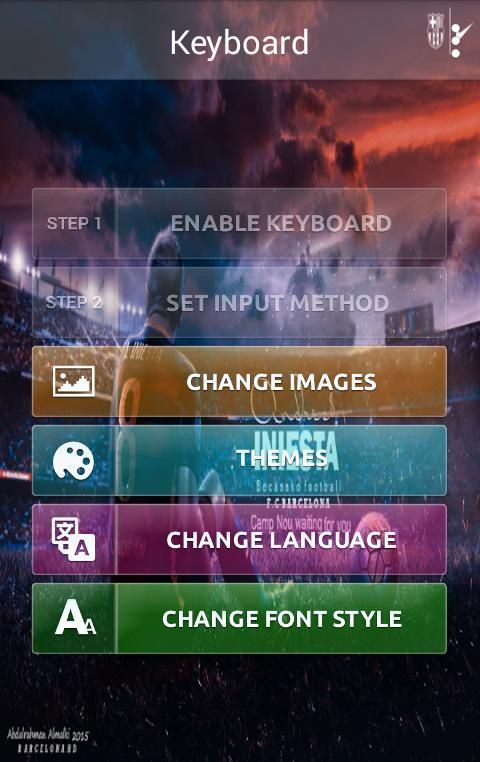 لوحة المفاتيح لانيستا هو تطبيق التي يمكن أن تغير لوحة المفاتيح لدينا مع مواضيع انيستا، مثيرة جدا للاهتمام والتفاعلية، لأنه في بلدها هناك مواضيع مختلفة لكرة القدم التي يمكن اختيارها وفقا لرغباتنا.