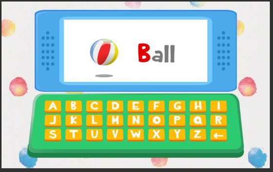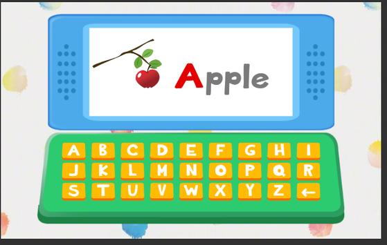 Kids Computer teaches the alphabet with objects that have the letter of the alphabet for example A is for Apple, B is for Ball, etc. this Computer game also