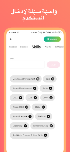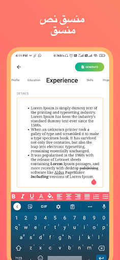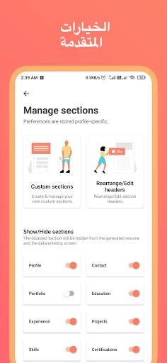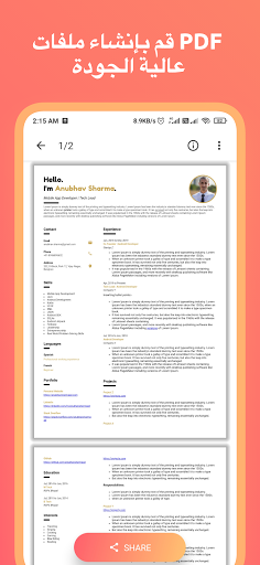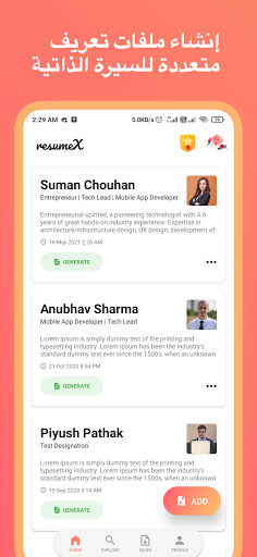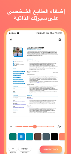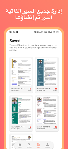 📂 بسهولة إدارة جميع السير الذاتية التي تم إنشاؤها بأمان في التطبيق.
