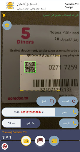 - مسح رمز رقمي أو رمز شريطي لإعادة تحميل بطاقة SIM الخاصة بك