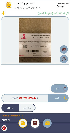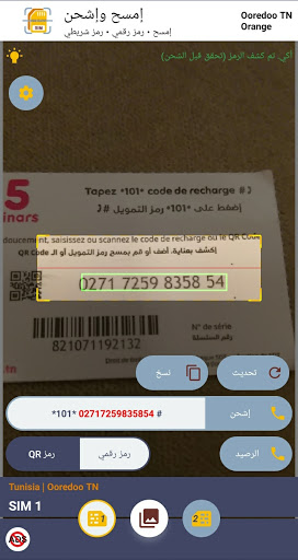 - أعد فحص رمز إعادة الشحن عن طريق النقر على زر التحديث الموجود بين أزرار اختيار بطاقة SIM