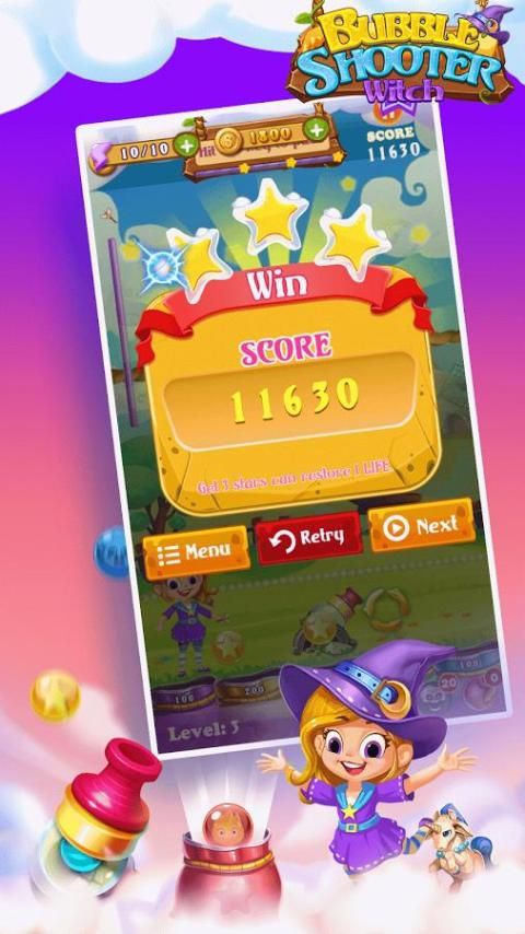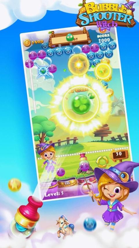 5.Burst جميع الفقاعات لانقاذ witchḂŸs عصا سحرية ومحاولة للحصول على المزيد من النقاط في كل جولة.